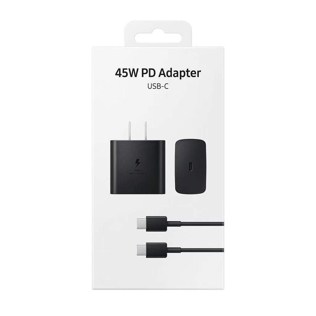 45W USB-C PD Fast Wall Charger with Type-C Cable – Black